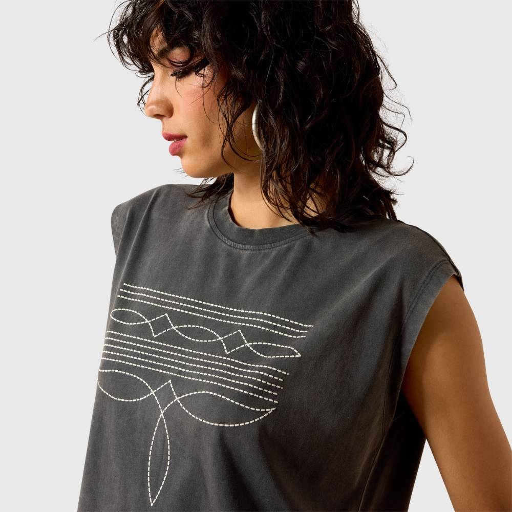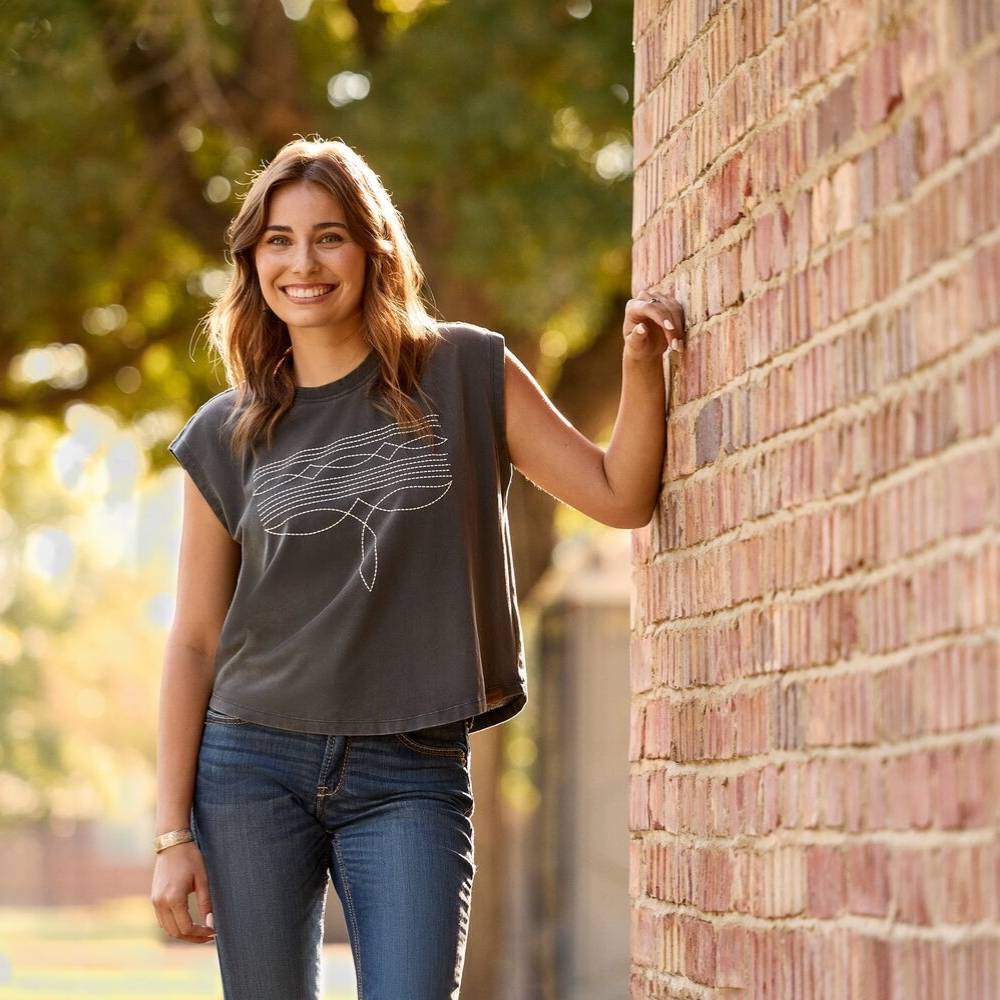 Apportez une touche rétro à votre garde-robe avec ce t-shirt court à l’esprit western. Son délavage minéral unique et ses détails imprimés en relief lui confèrent un charme vintage authentique. Le motif graphique ludique modernise le style western classique, pour un look casual et original.