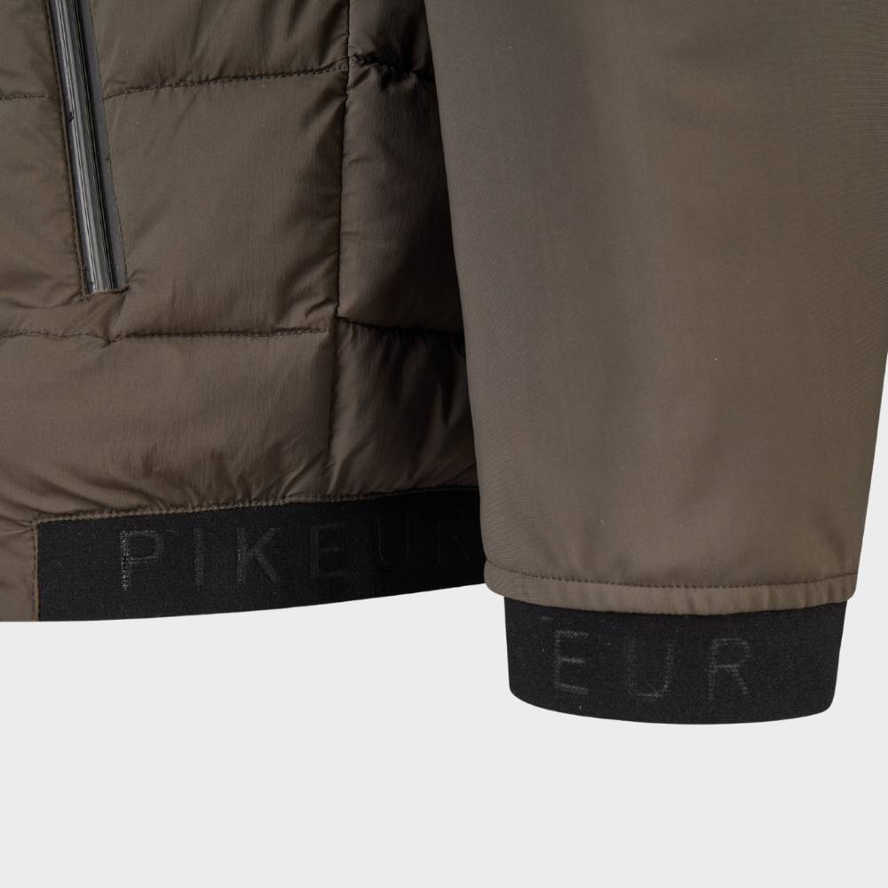 Détails modernes : impression Pikeur noire sur la sous-patte et la capuche, badge en silicone sur la manche.