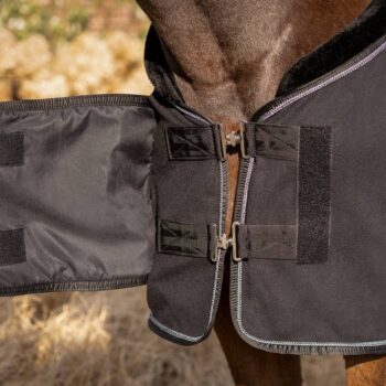 Alliez style et confort avec la couverture polaire Salerno, dotée d’un col luxueux et d’un cordon décoratif raffiné. Son design élégant s’accompagne de sursangles croisées invisibles et d’une double fermeture avant avec rabat de poitrail superposé, garantissant un maintien parfait et une allure soignée.