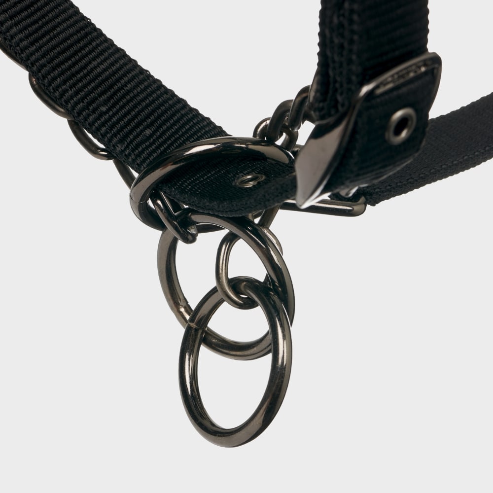 La conception à triple anneau permet de varier le niveau de contrôle et de sévérité, tandis que les doublures de mousse PVC au niveau de la muserolle et de la têtière permettent d’absorber les chocs tout en restant confortables.La conception à triple