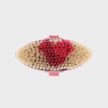 Cette brosse de la collection Lyvia combine confort et praticité pour le toilettage quotidien de votre cheval. Sa poignée ergonomique et sa sangle en nylon assurent une excellente prise en main, tandis que les poils en forme de cœur ajoutent une touche ludique et élégante.