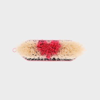 Cette brosse dandy de la collection Lyvia est parfaite pour nettoyer les jambes de votre cheval en douceur. Grâce à son manche ergonomique, elle offre une prise en main confortable. Son imprimé en forme de cœur et ses poils roses en forme de cœur apportent une touche ludique et tendance à votre matériel de pansage.