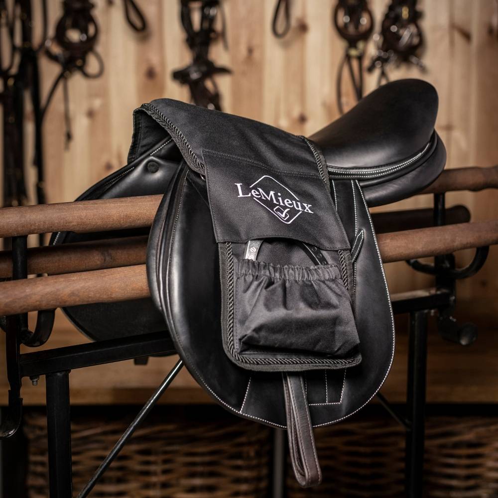 Protégez votre selle et gardez vos étriers à portée de main avec cette housse pratique. La doublure en polaire douce préserve votre selle des éraflures, tandis que la poche élastique sécurise vos étriers grâce à un rabat magnétique. Finitions soignées avec tressage décoratif et logo LeMieux pour un accessoire à la fois fonctionnel et élégant.