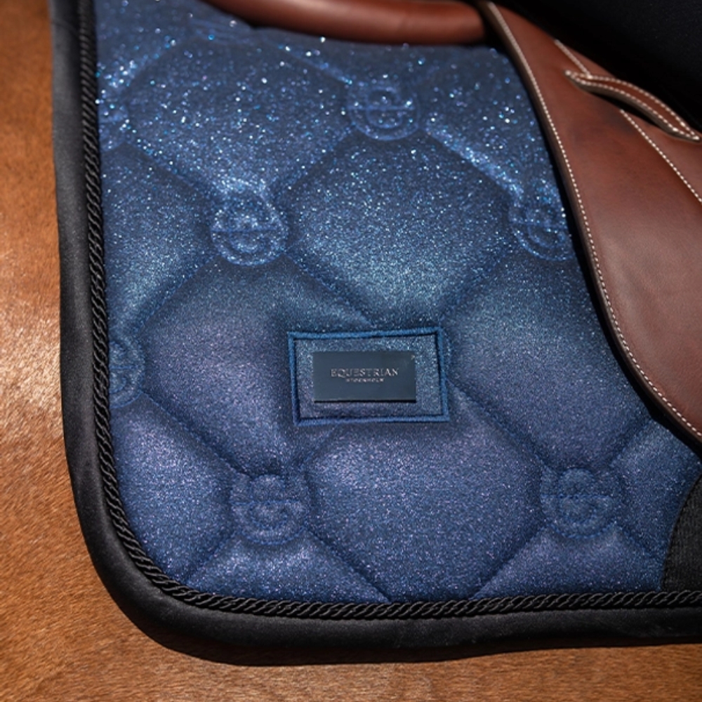 Tapis de selle élégant en bleu brillant avec des détails noirs